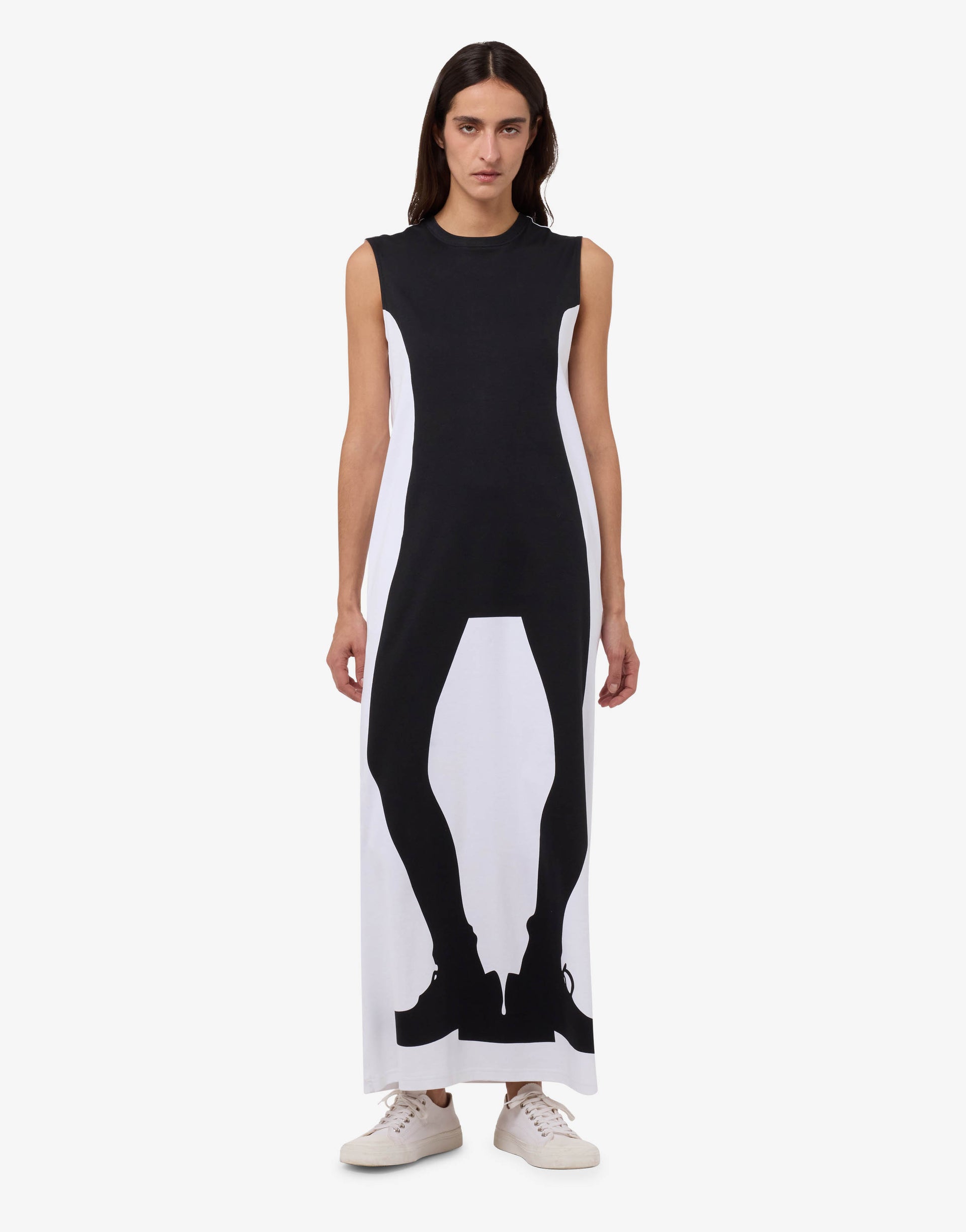 The Spring/Summer 2026 collection features a long dress in heavy cotton with a contrasting print.