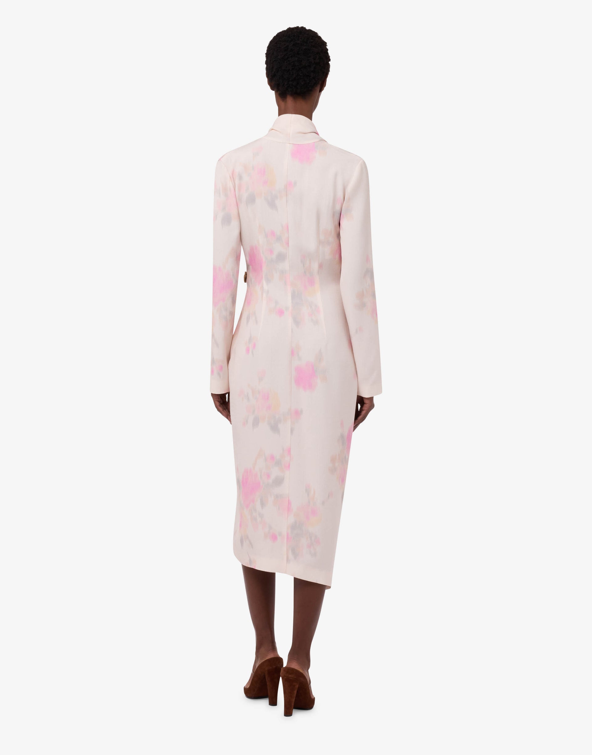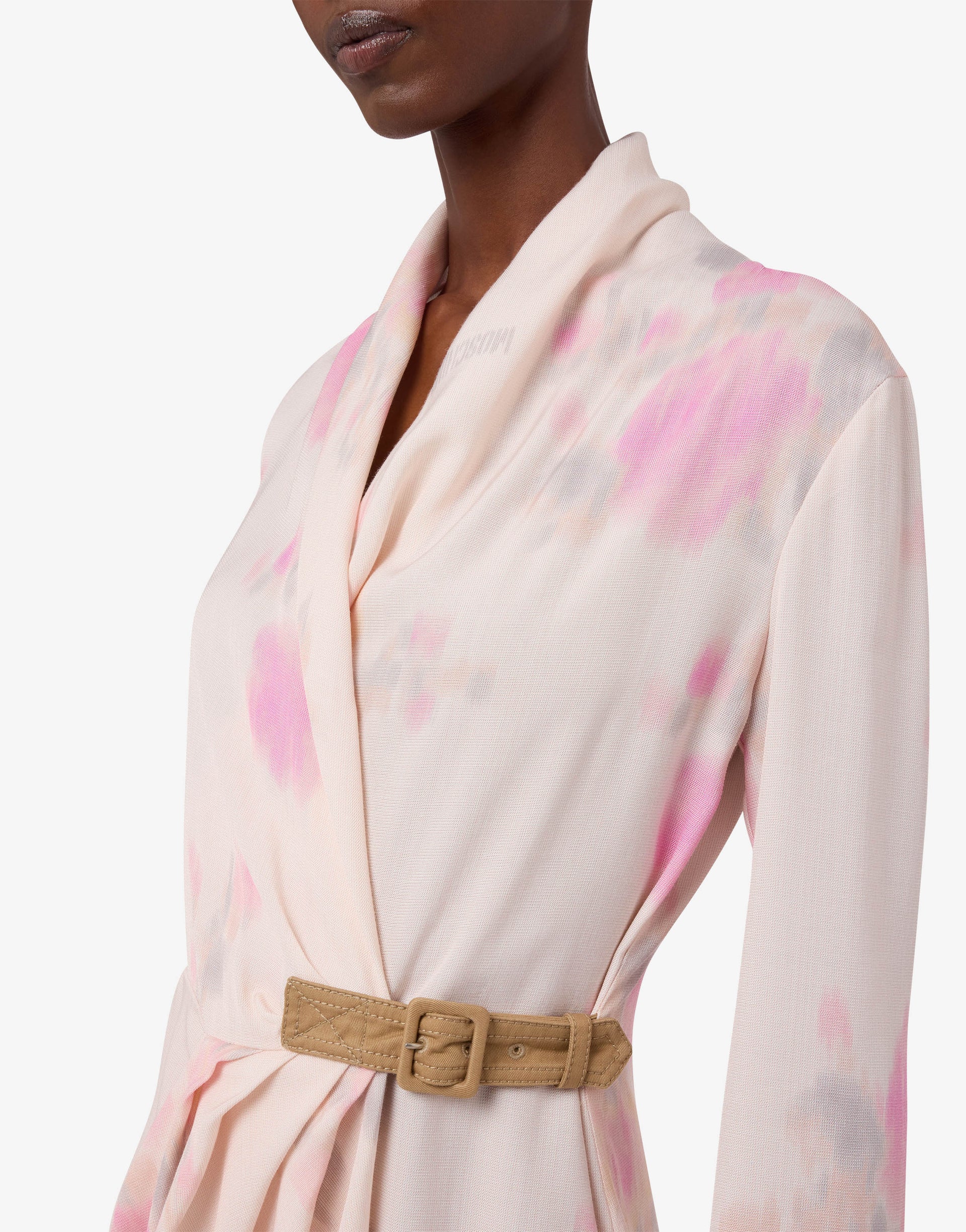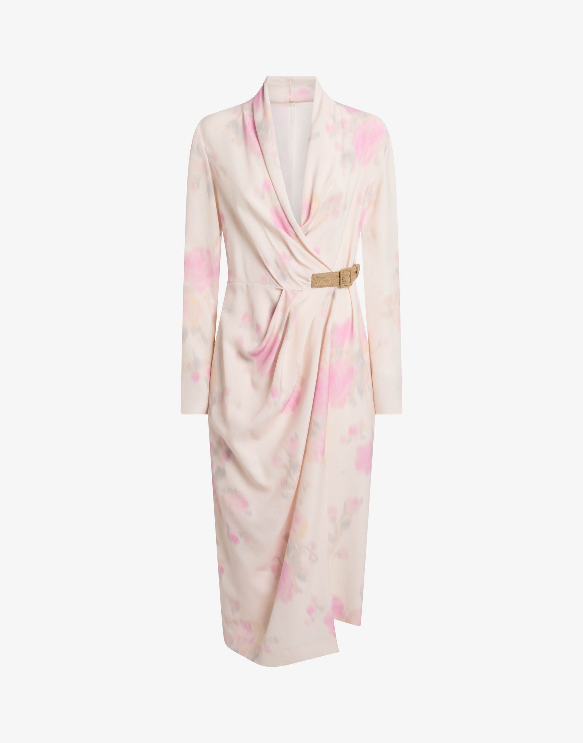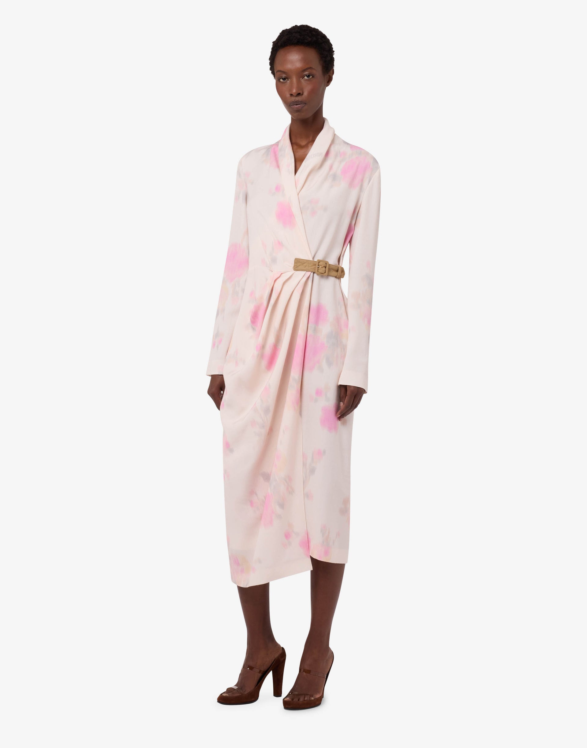 The Spring/Summer 2026 collection features a dress with an all-over floral print with a chiné effect and a side closure with a cotton gabardine strap.