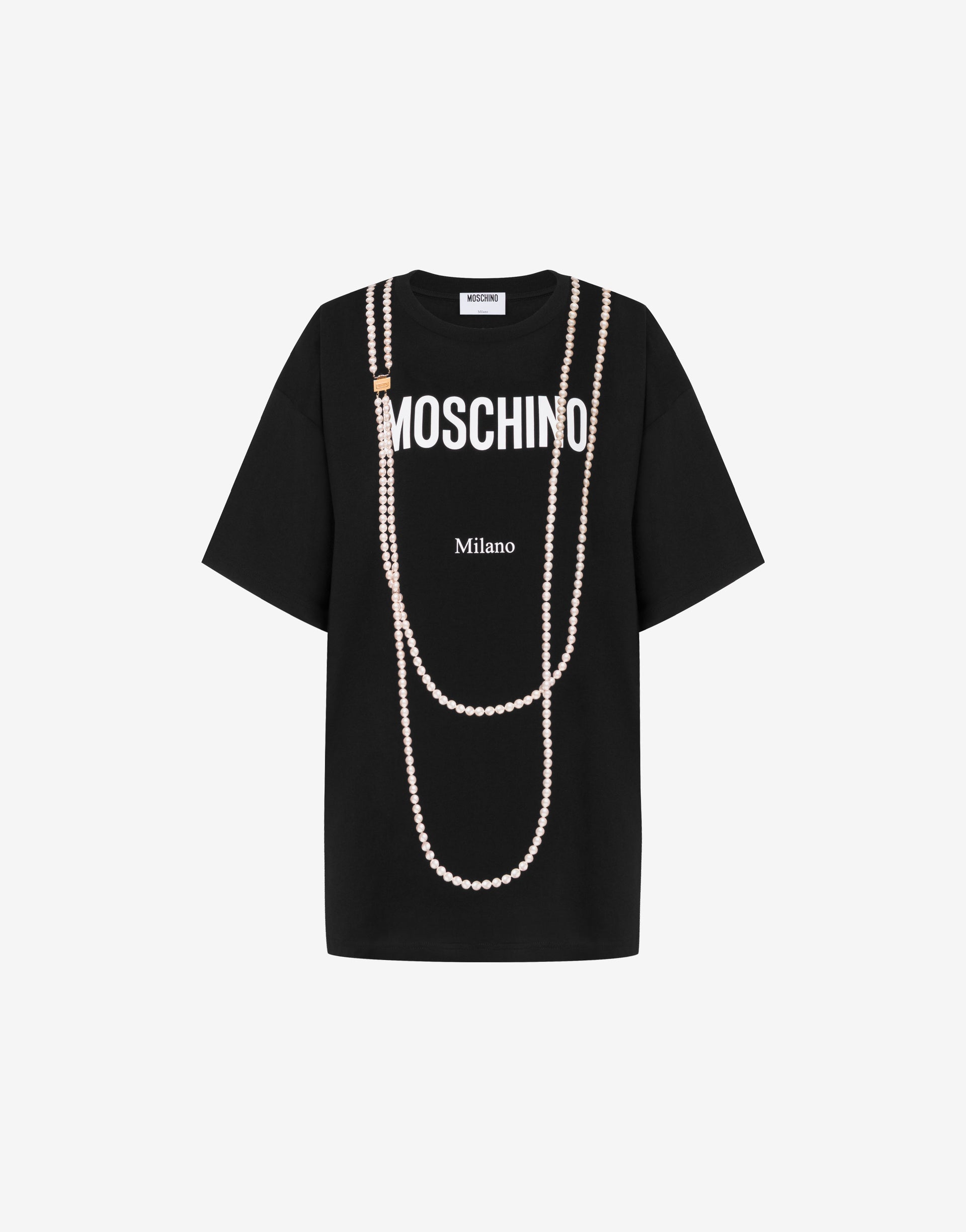The Resort 2026 collection features the organic cotton jersey T-shirt with a pearl necklace print with a trompe-l'œil effect.