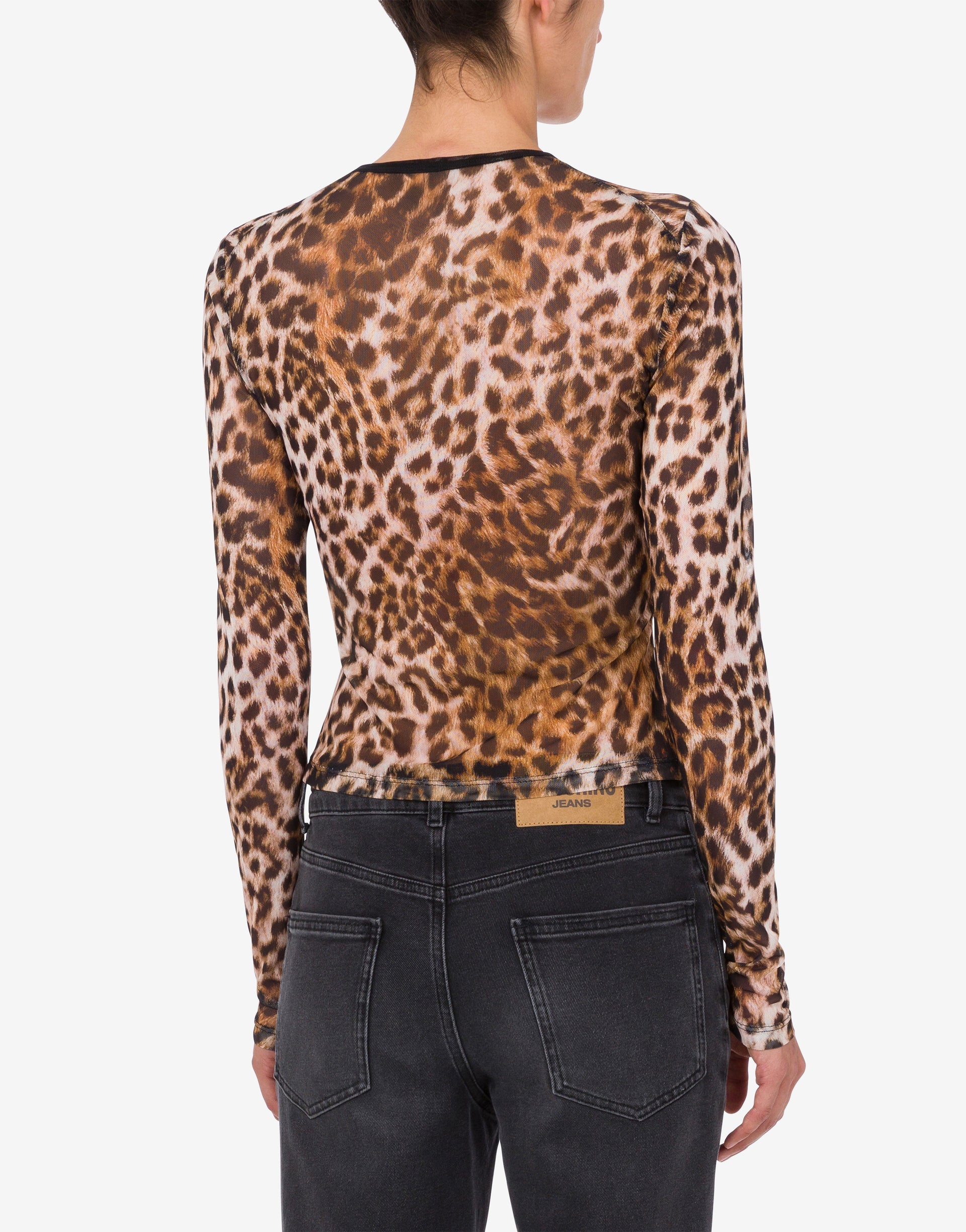 The Spring/Summer 2026 collection features a mesh T-shirt with an all-over leopard print and a small embroidered logo on the front.