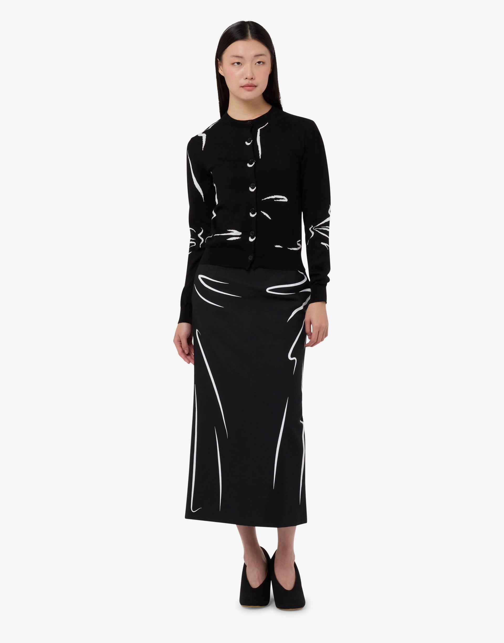The Spring/Summer 2026 collection features a pure cotton cardigan with trompe-l'œil inlays.
