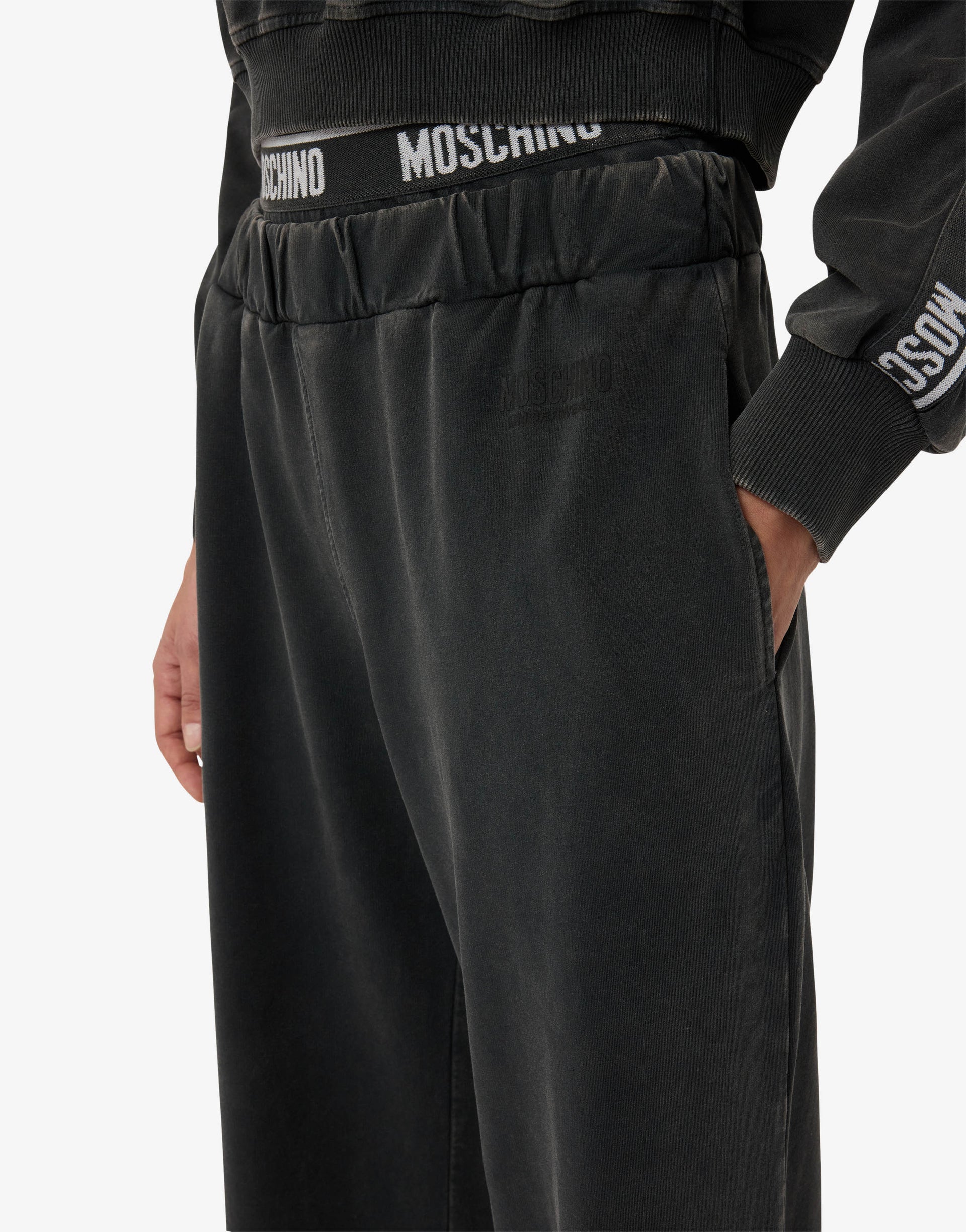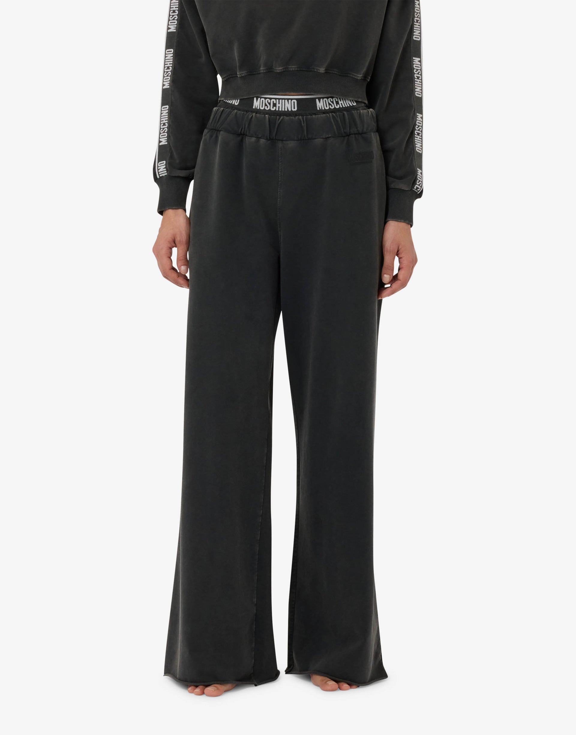 The Spring/Summer 2026 collection features garment-dyed cotton fleece pants with an elastic waistband personalized with a contrasting jacquard logo.