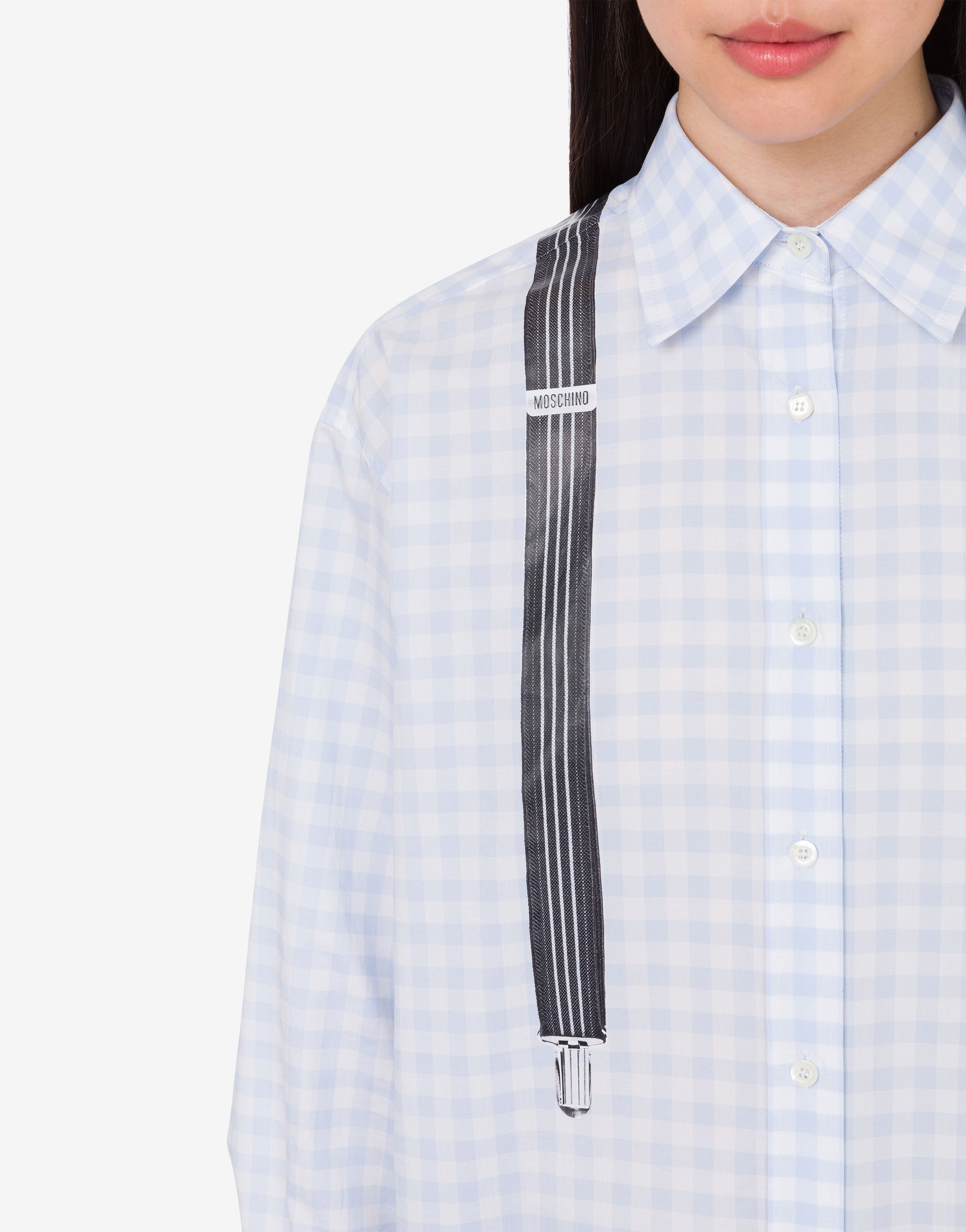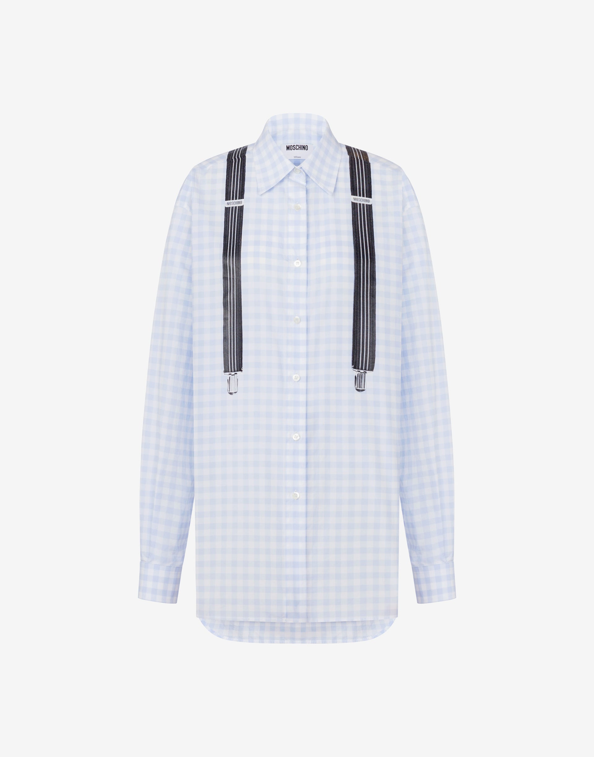 The Resort 2026 collection features a cotton vichy shirt with a trompe-l'œil effect suspender print.