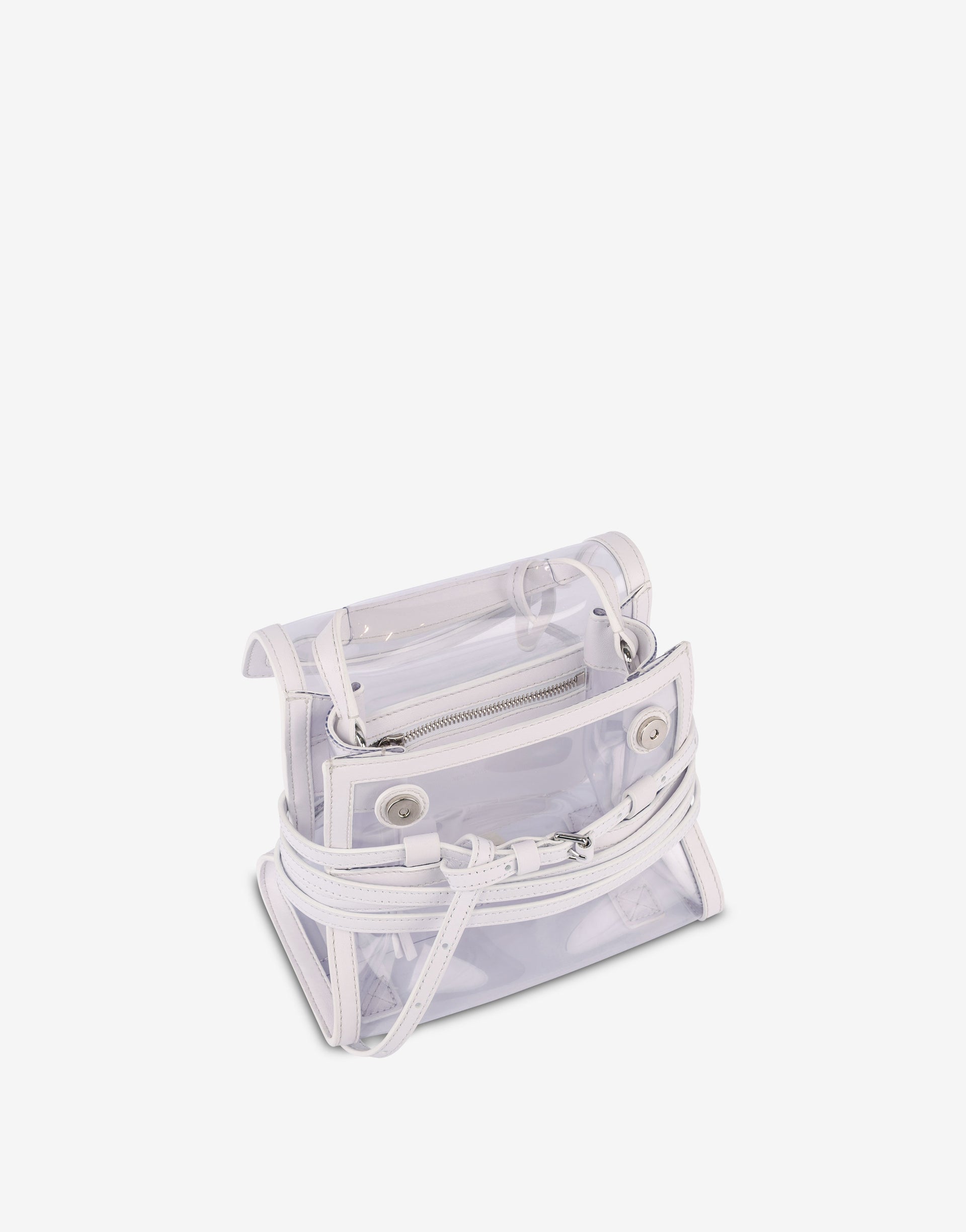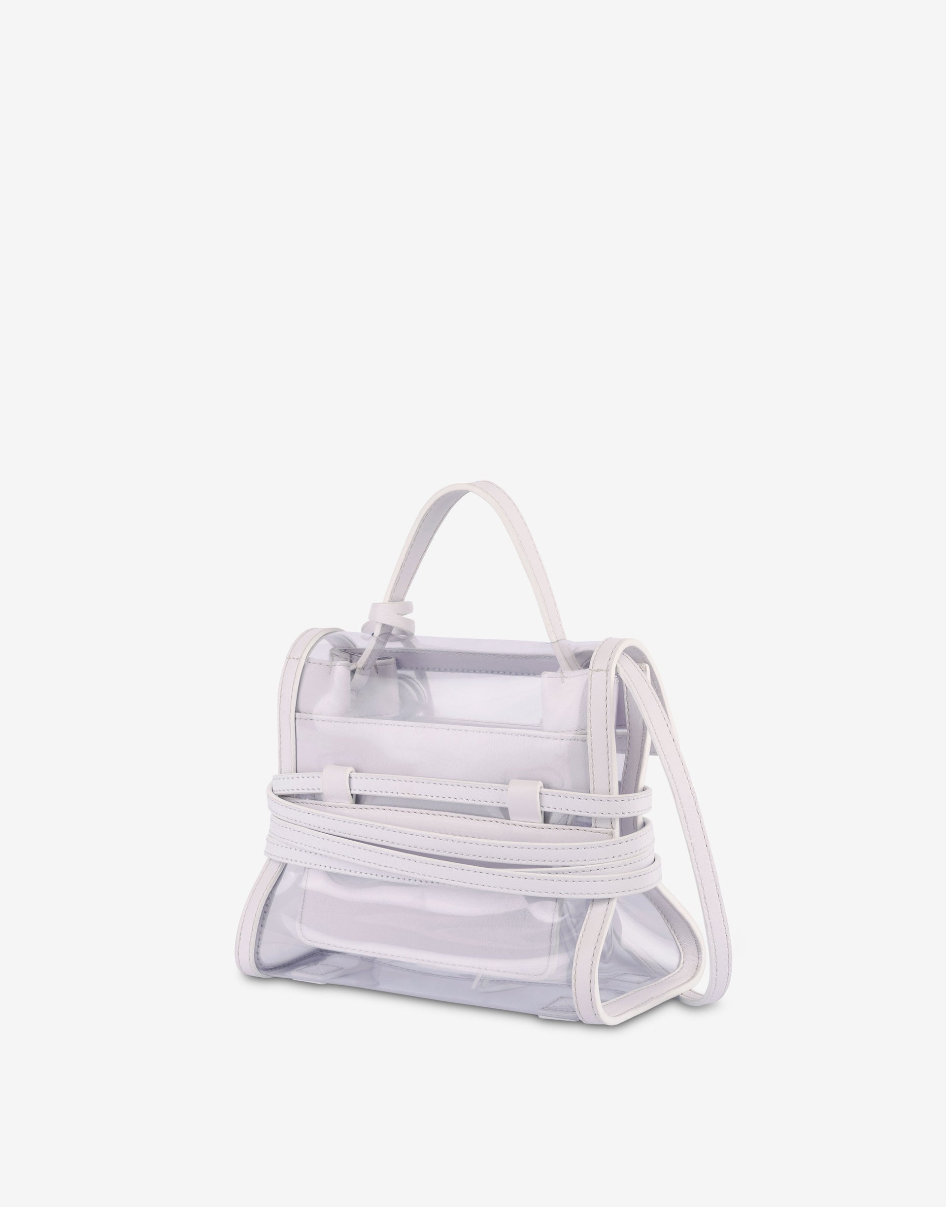 La colección Resort 2026 presenta el bolso pequeño de PVC transparente con detalles de napa, de construcción ligera. Un rasgo distintivo es el cinturón decorativo completamente extraíble que abraza el cuerpo del bolso.