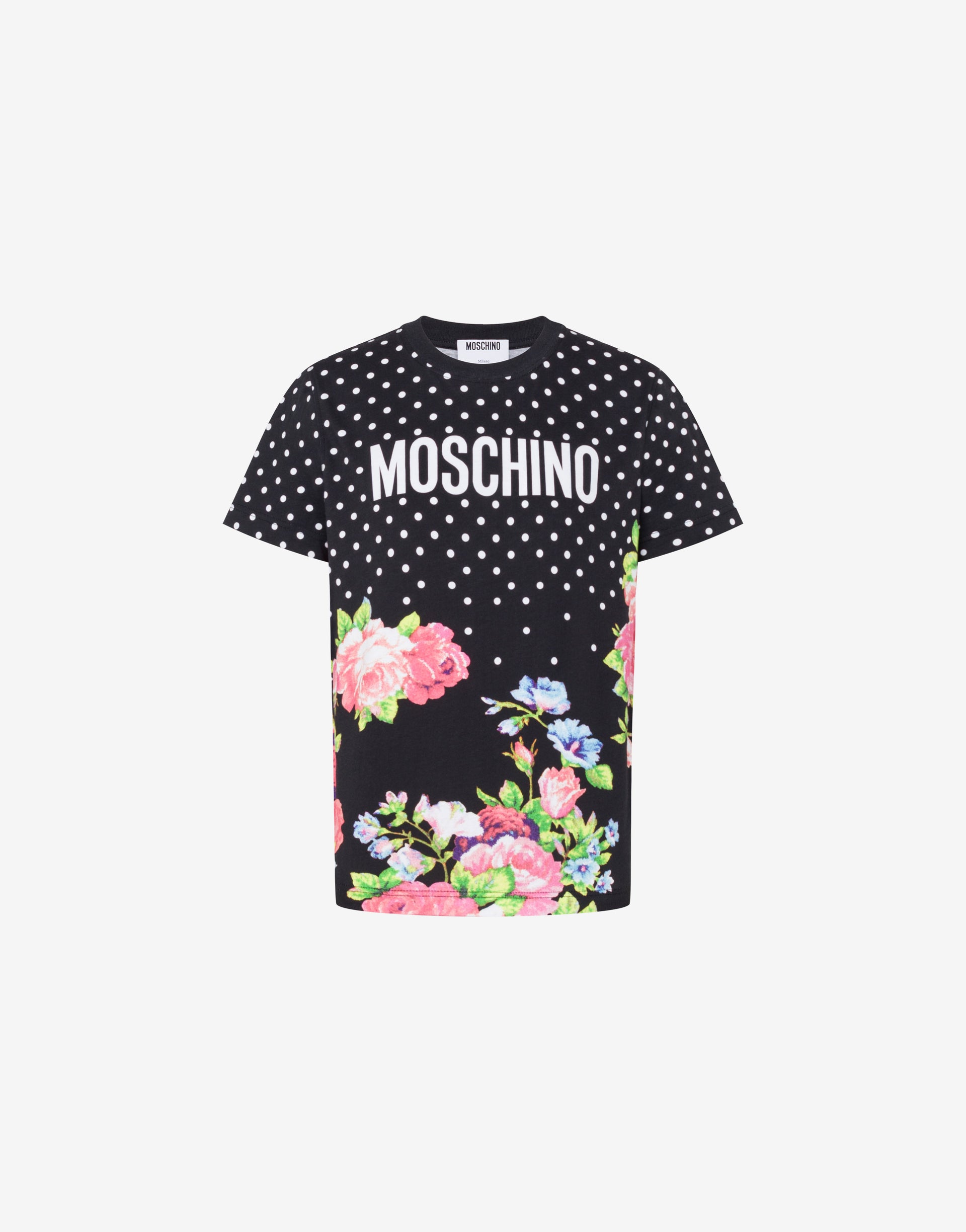 Camiseta estampada de punto de algodón orgánico Negro Moschino 0