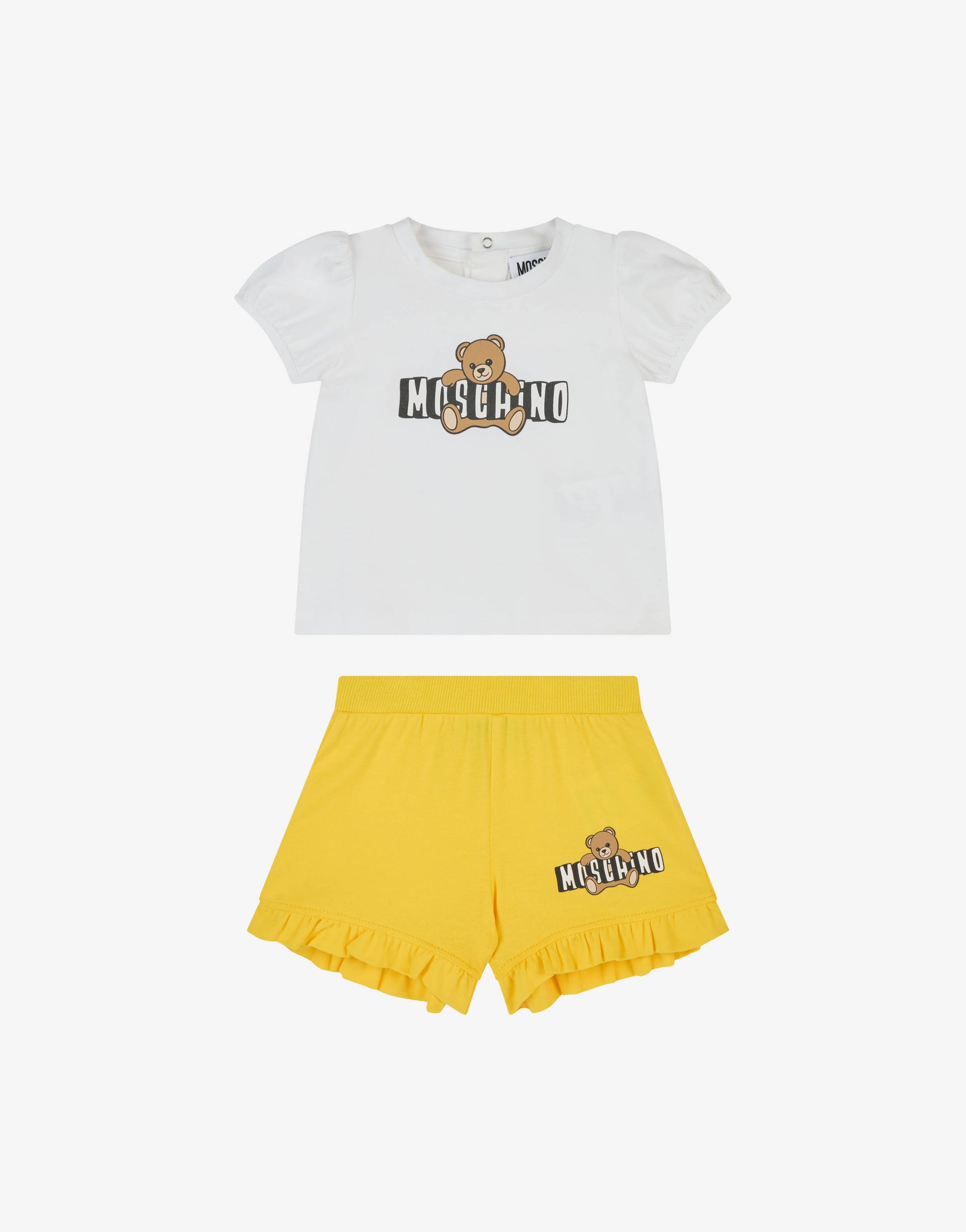 Ensemble t-shirt et short en jersey de coton Jaune Moschino 0