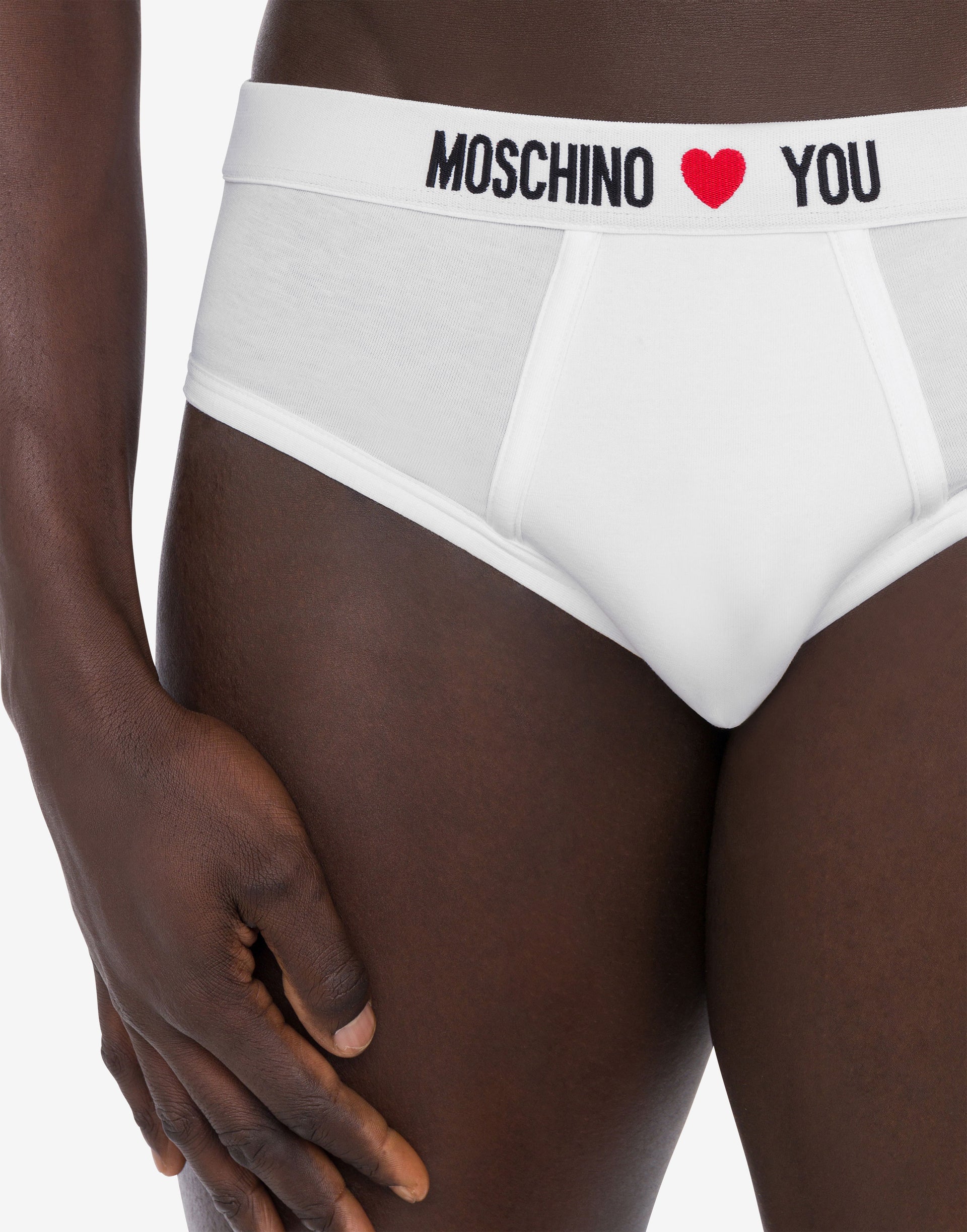 Set di 2 slip in jersey di cotone stretch con elastico personalizzato con ricamo jacquard 'Moschino Loves You'.