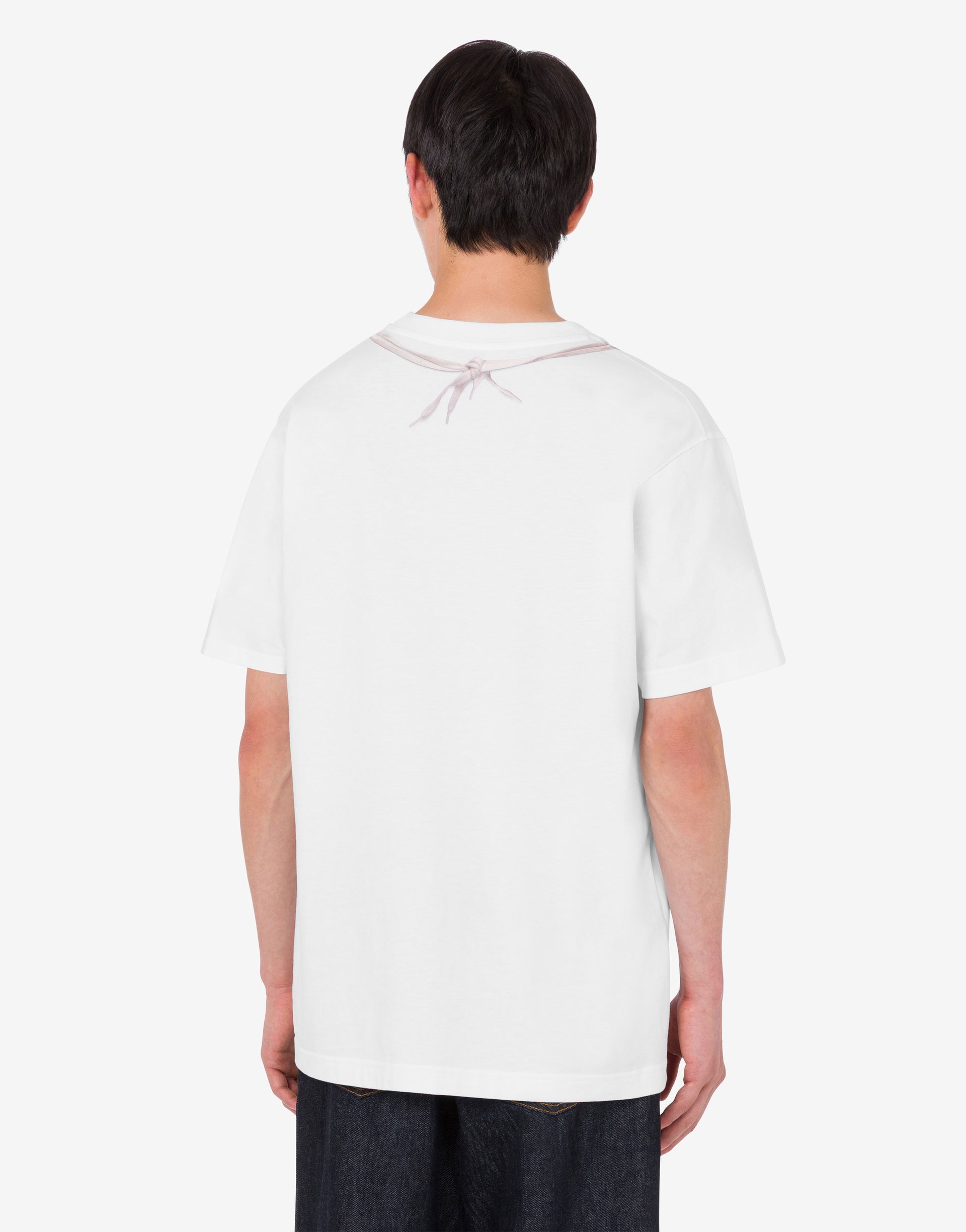 A coleção Primavera/Verão 2026 apresenta a t-shirt em malha de algodão orgânico com estampado em forma de luvas de boxe com efeito trompe-l'œil.