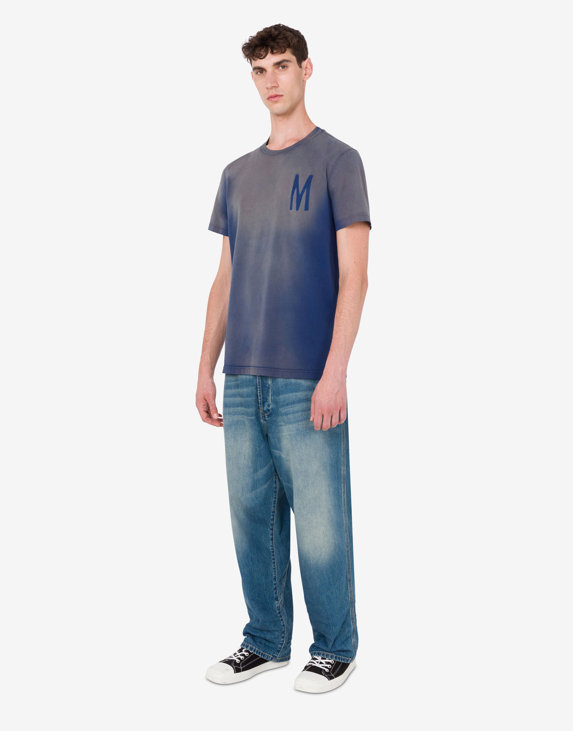 A coleção Primavera/Verão 2026 apresenta a t-shirt em malha de algodão orgânico com efeito degradê e estampa M na frente.
